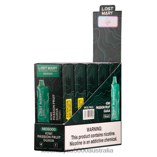 Flavor: The Kiwi Fuse Lost Mary MO5000 rechargeable vape (formerly known as Kiwi Passion Fruit Guava) uses a tropical blend of kiwi, passion fruit and guava flavorings.
