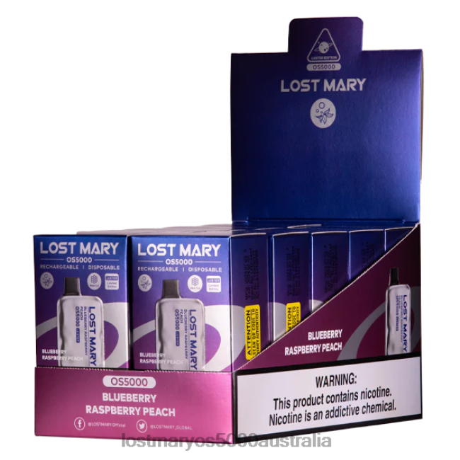 The Blueberry Raspberry Peach Lost Mary OS5000 Luster uses a sweet blend of fresh fruit flavors for a smooth vaping experience. E-liquid contents: 10ml